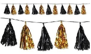 8' Tassel Garland - Black and Gold Metallic