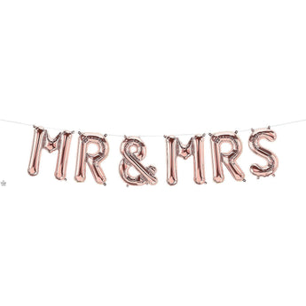 Pancarta de globos de 16 pulgadas - Sr. y Sra. - Oro rosa