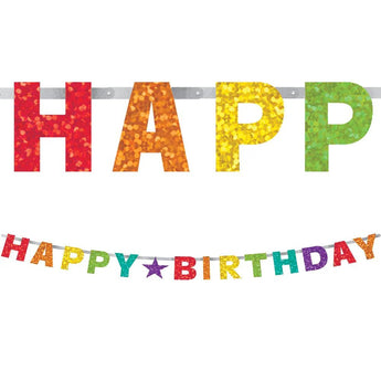 ¡Dale un toque de color a tu celebración con el banderín de letras prismáticas arcoíris de Amscan! Con una longitud de 2,4 metros, este vibrante banderín presenta letras prismáticas de arcoíris que forman la frase "Feliz Cumpleaños", convirtiéndolo en la decoración perfecta para fiestas de cumpleaños de todas las edades. Fabricado con materiales duraderos de alta calidad, este banderín está diseñado para brillar y captar la luz, añadiendo un toque festivo y alegre a tu evento. Fácil de colgar y reutilizable, es una excelente manera de realzar la decoración de tu fiesta y crear un ambiente festivo para tus invitados.
